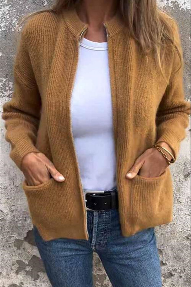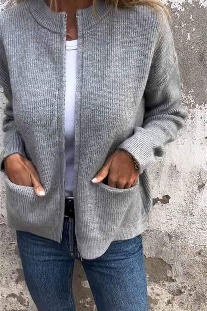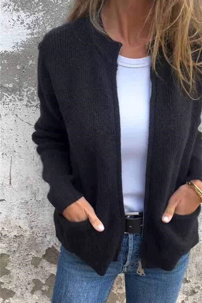 Zaina | Casual Round Neck Zip Cardigan