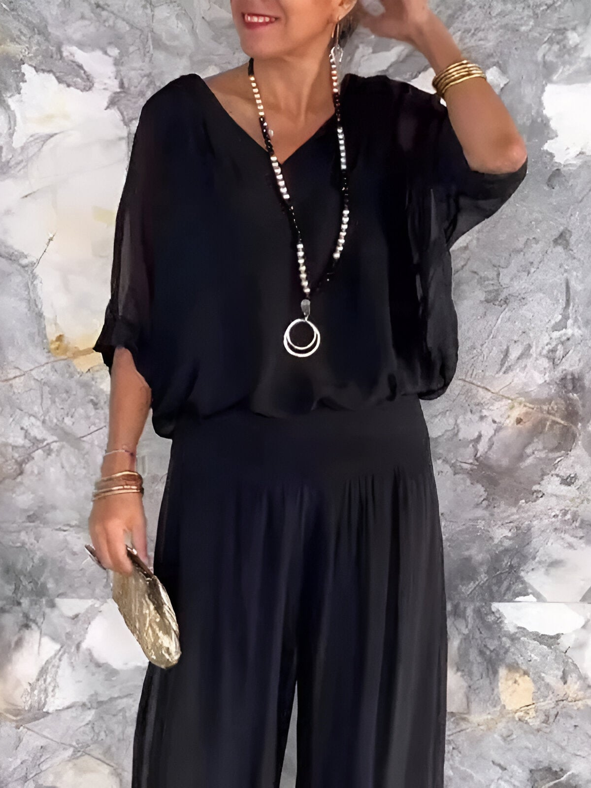 • Design: Two-piece coordinated set with elegant, flowing silhouette