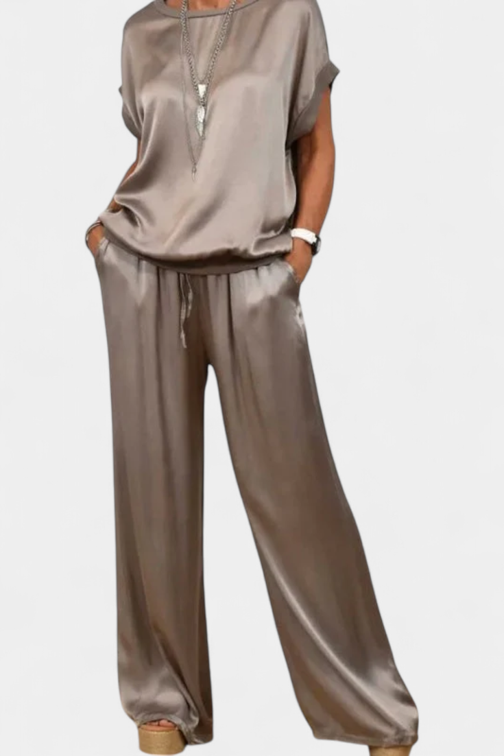 Step into the perfect balance of polish and ease with the Brianca Elegant Two-Piece Set. Designed for women who crave comfort without compromising style, this set features a flowy blouse paired with wide-leg pants to create a flattering, graceful silhouette. Whether you're heading to brunch or winding down on a stylish evening in, the Brianca Set moves with you, not against you. Say goodbye to stiff fabrics and hello to smooth, breathable wear that feels like freedom.